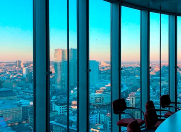 В центре города с хорошим видом на центр.